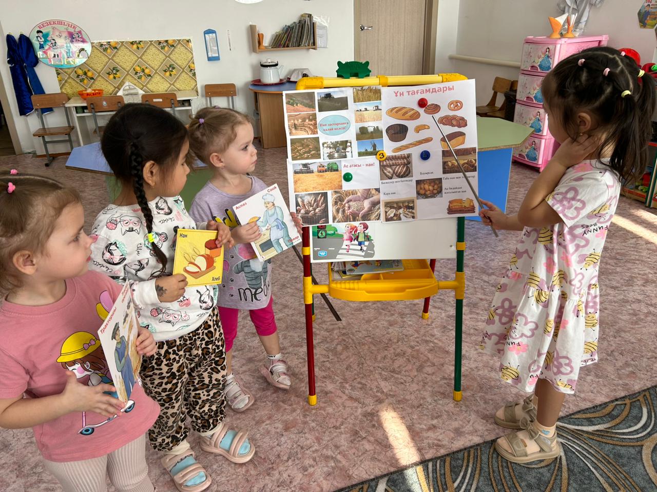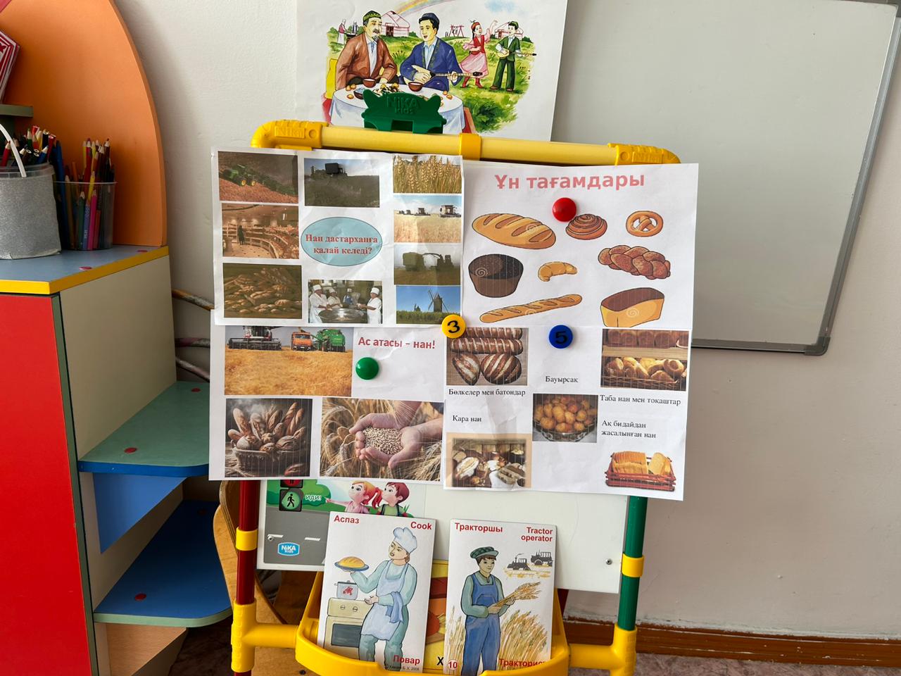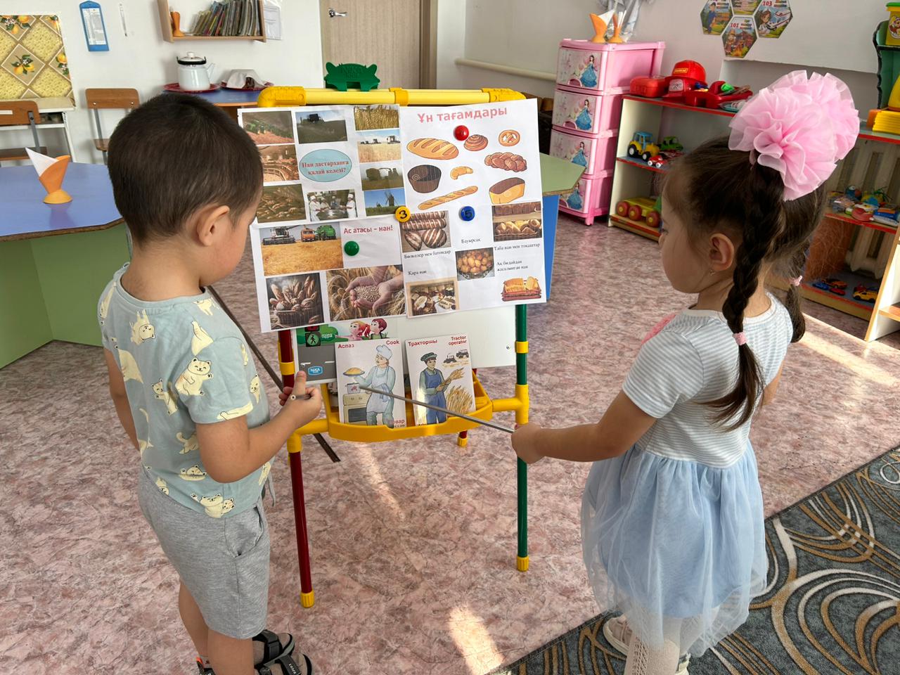 Мақсаты: Нан туралы балалардың түсініктерін кеңейтіп, нан қайдан және қалай келетінің түсіндіру. Еңбекті бағалап, адамгергілік қасиеттерін одан әрі оятып, сөздік қорын молайта түсу.