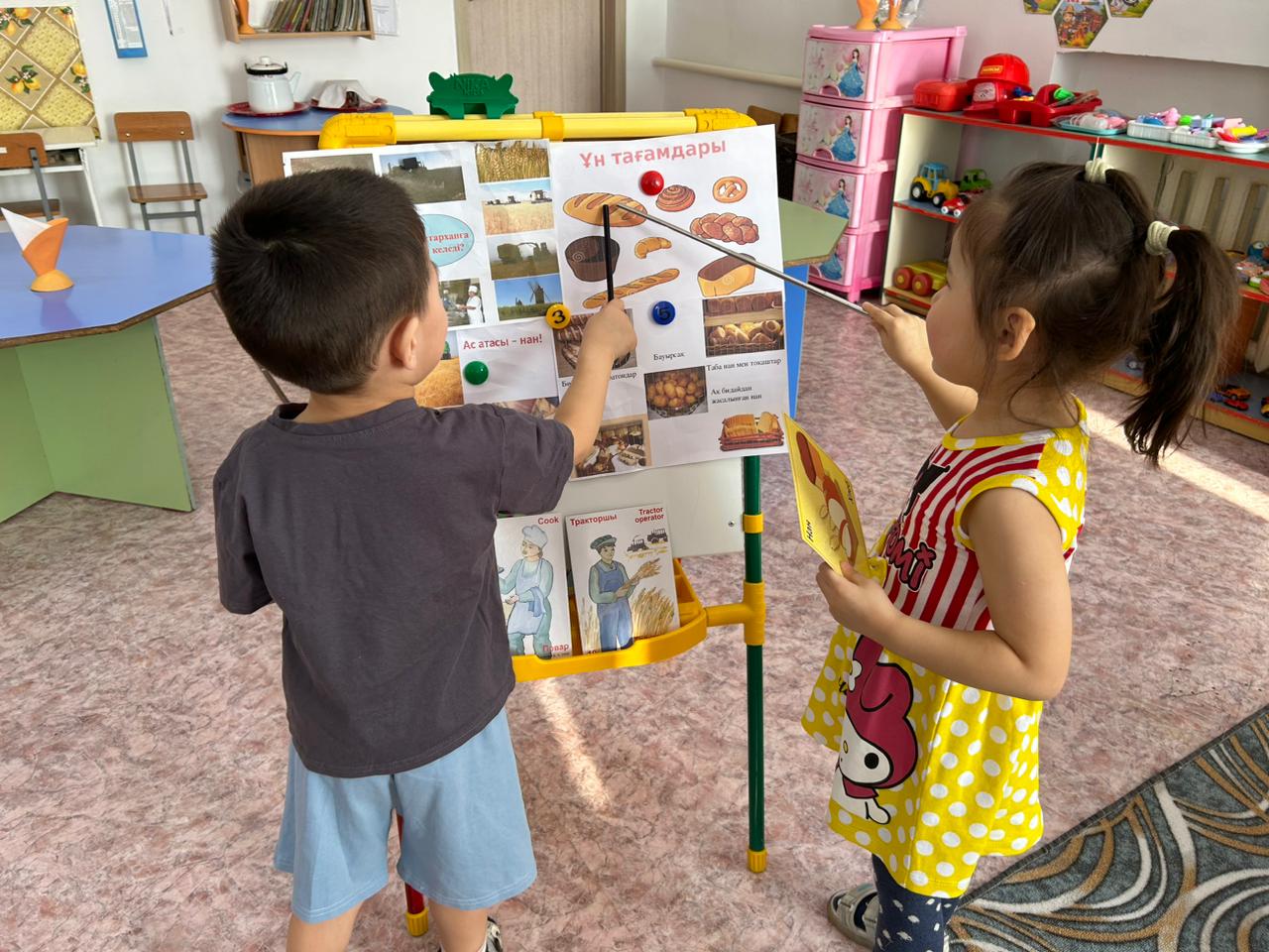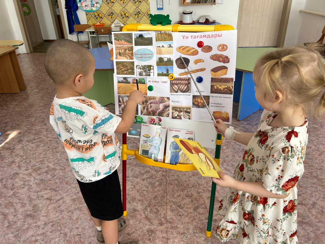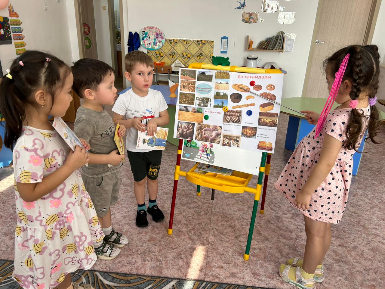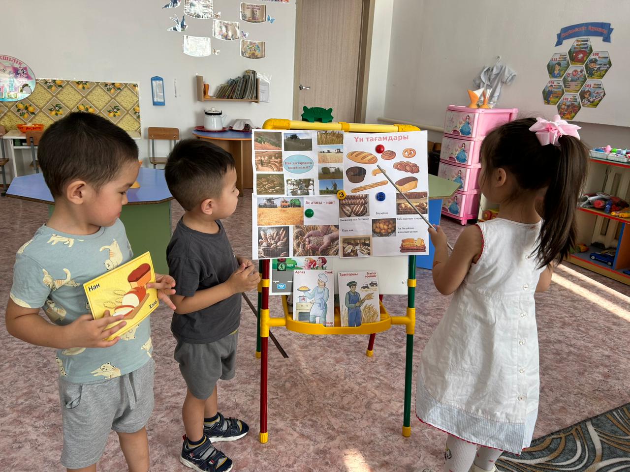 Мақсаты: Нан туралы балалардың түсініктерін кеңейтіп, нан қайдан және қалай келетінің түсіндіру. Еңбекті бағалап, адамгергілік қасиеттерін одан әрі оятып, сөздік қорын молайта түсу.