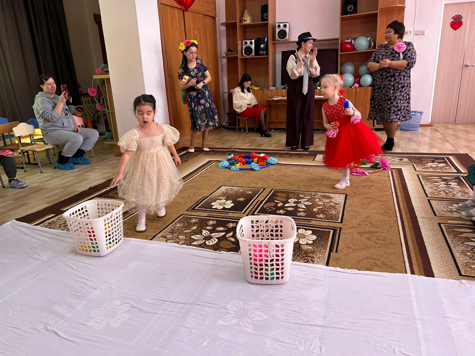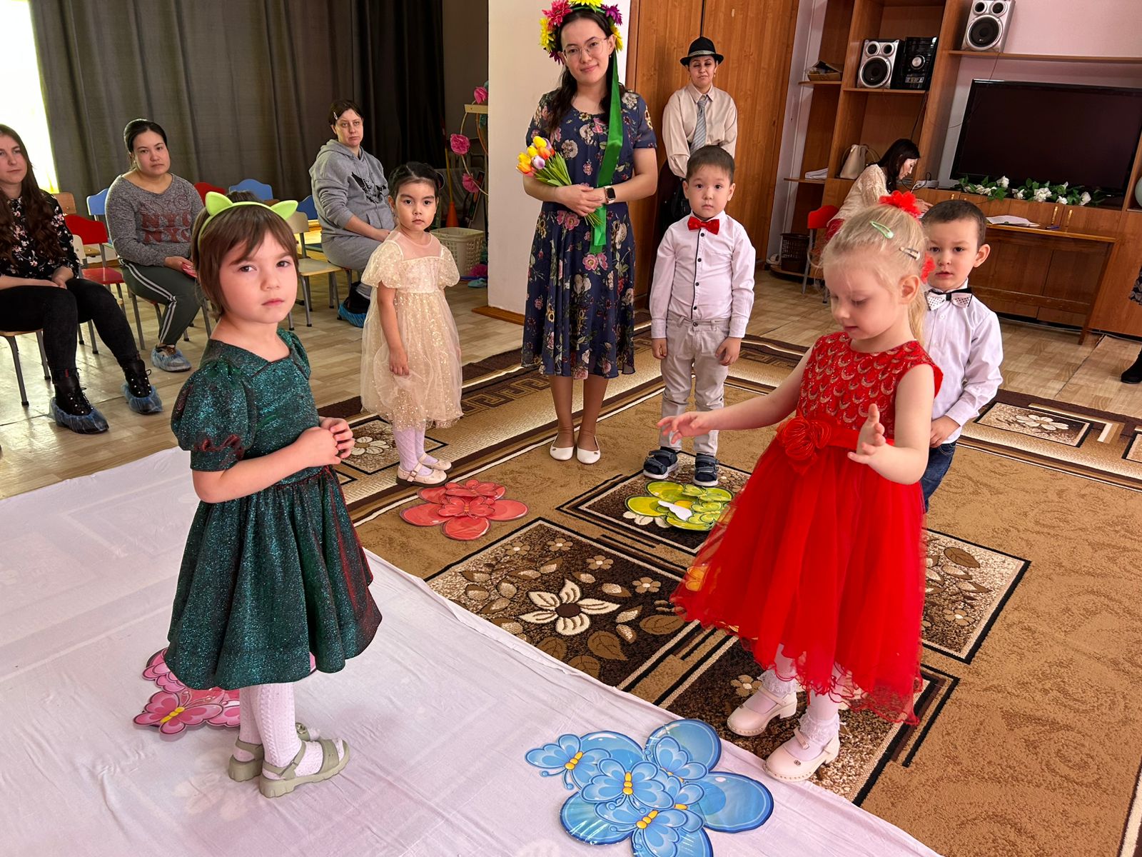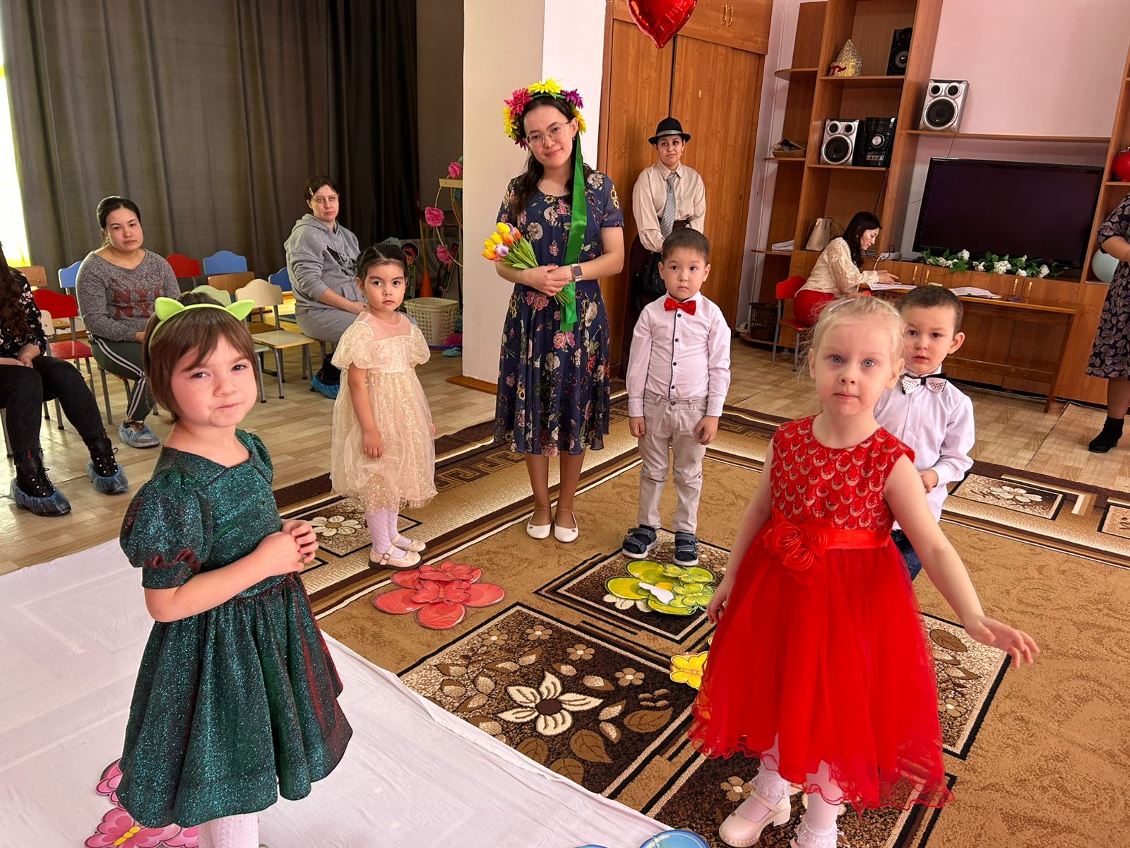 Мақсаты: мерекелік көңіл-күйін құру; ән және қозғалыс орындаушылық дағдыларын қалыптастыру; балалардың назарын жалпы әрекетте қатысу тілегін қалыптастыруға эмоциялық қабылдауын ынталандыру; өзінің жақын адамдарын қуанта білуге, мейірімділікке тәрбиелеу.