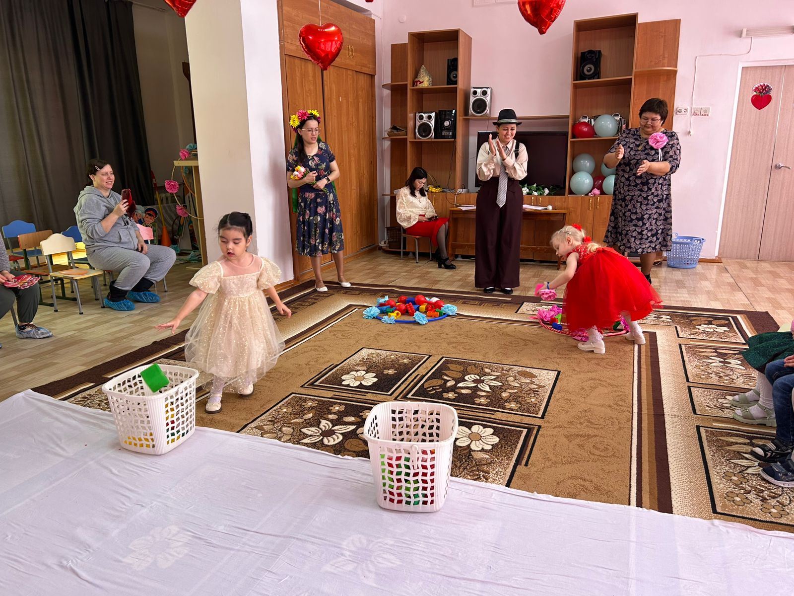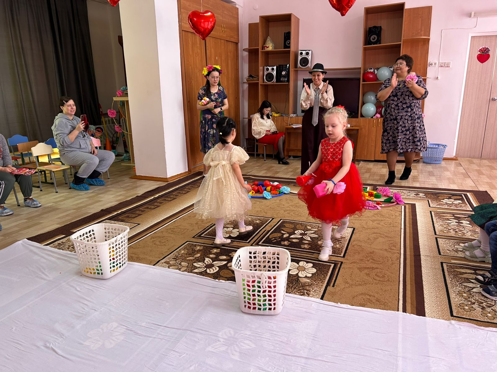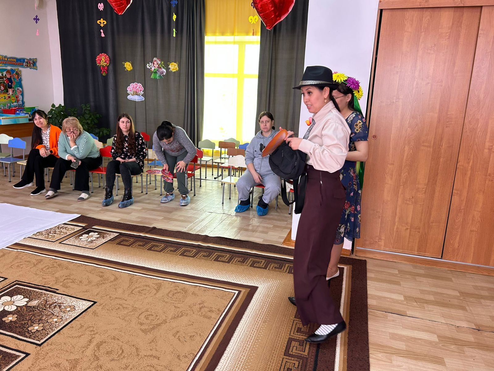 Мақсаты: мерекелік көңіл-күйін құру; ән және қозғалыс орындаушылық дағдыларын қалыптастыру; балалардың назарын жалпы әрекетте қатысу тілегін қалыптастыруға эмоциялық қабылдауын ынталандыру; өзінің жақын адамдарын қуанта білуге, мейірімділікке тәрбиелеу.