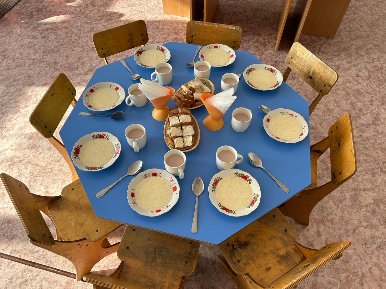Завтрак: каша пшенная, какао с молоком, батон с маслом.